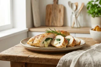 - Apio en láminas finas: Lava y seca el tallo de apio cuidadosamente. Usa el cuchillo para hacer cortes muy finos en diagonal, logrando láminas que aporten textura pero sin dominar el sabor.
