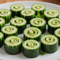 Una vez tengas todos los rollitos formados, colócalos en tu fuente de presentación. Justo antes de llevarlos a la mesa, puedes rociar un hilo muy fino de aceite de oliva virgen extra y unas gotas de reducción de balsámico o miel por encima para darles brillo y potenciar el sabor. Si te gusta, un toque de pimienta negra recién molida les va genial. Sírvelos inmediatamente para que la rúcula se mantenga crujiente. Puedes acompañar estos rollitos con unos colines de pan o integrarlos en una mesa de picoteo junto a opciones calientes como unas brochetas caprese para tener variedad de temperaturas y colores.